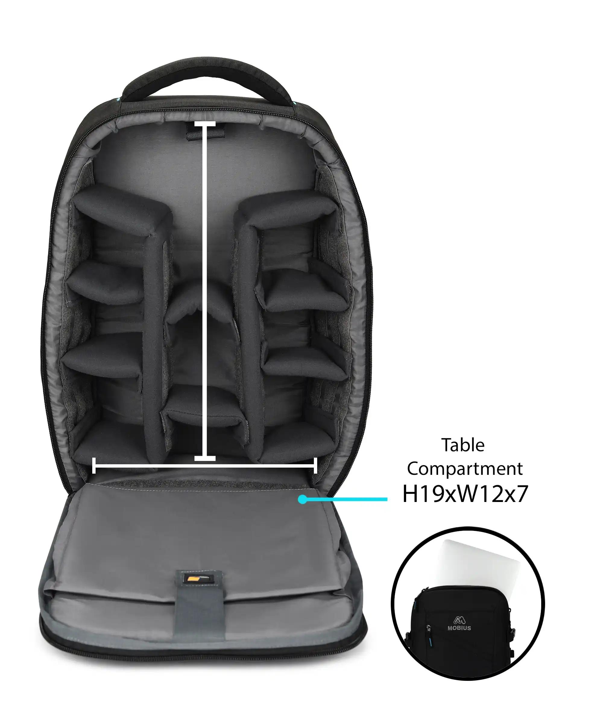 Customizable Organization: Say goodbye to the hassle of disorganized gear. The MOBIUS Clicker Backpack comes equipped with padded touch-fastening interior dividers, allowing you to customize the layout according to your specific equipment configuration. Keep your gear neatly organized and readily accessible, ensuring smooth workflow and maximum efficiency on every shoot.