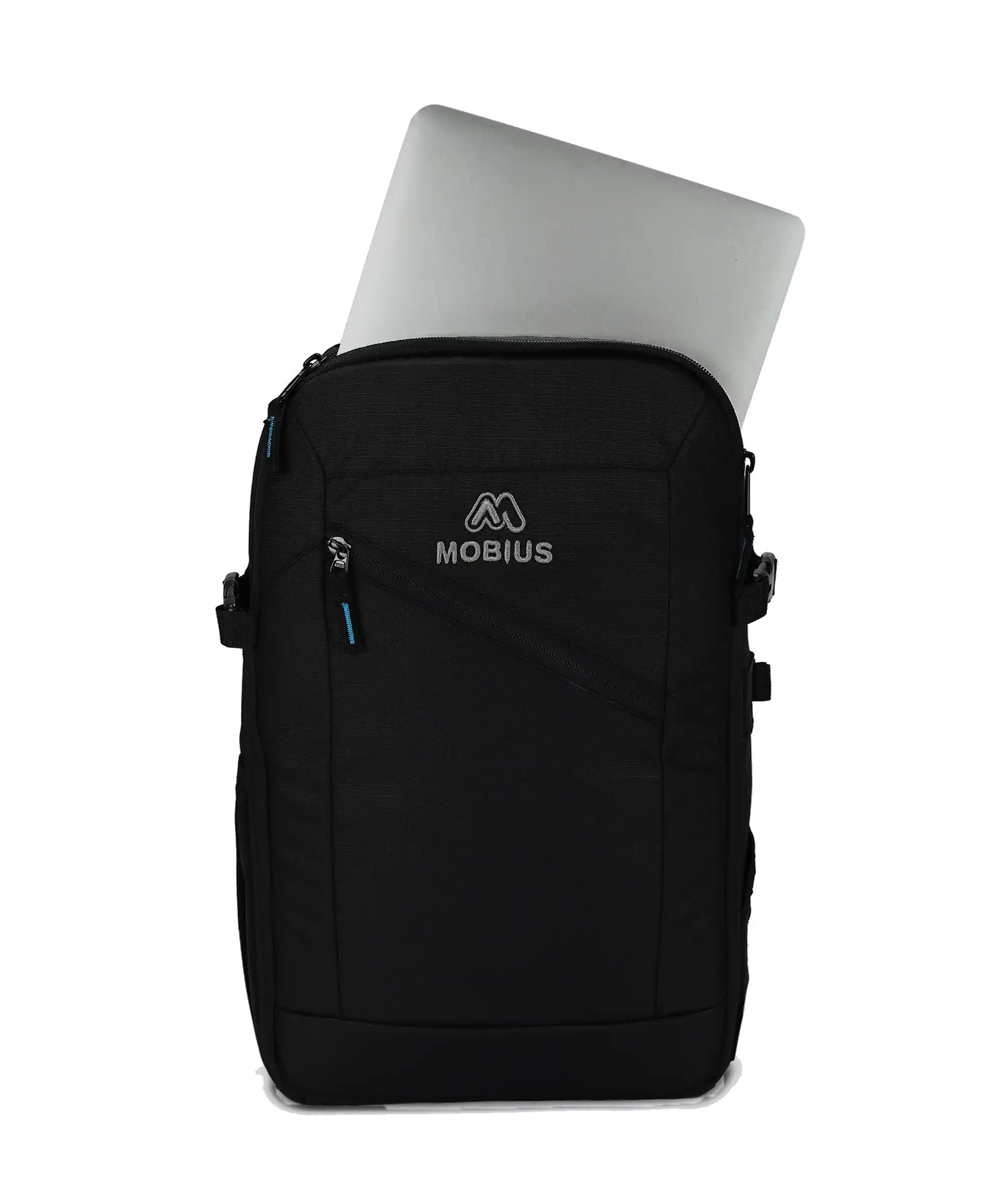 Sleek Design, Premium Quality: Elevate your style with the sleek and professional design of the MOBIUS Clicker Backpack. Available in timeless black, this backpack boasts a light-colored interior for enhanced visibility and a touch of sophistication.