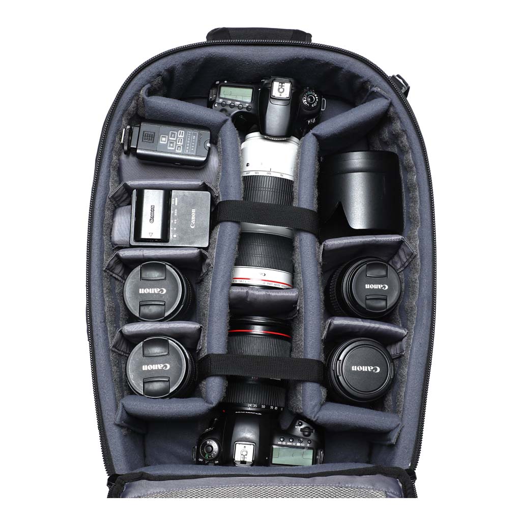 A Pro photographer’s backpack, crafted to organize and protect maximum gear in a compact design.
