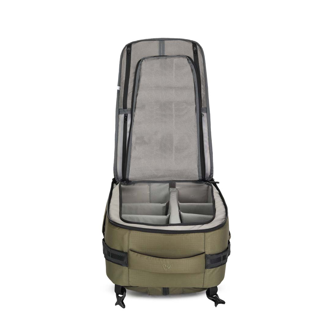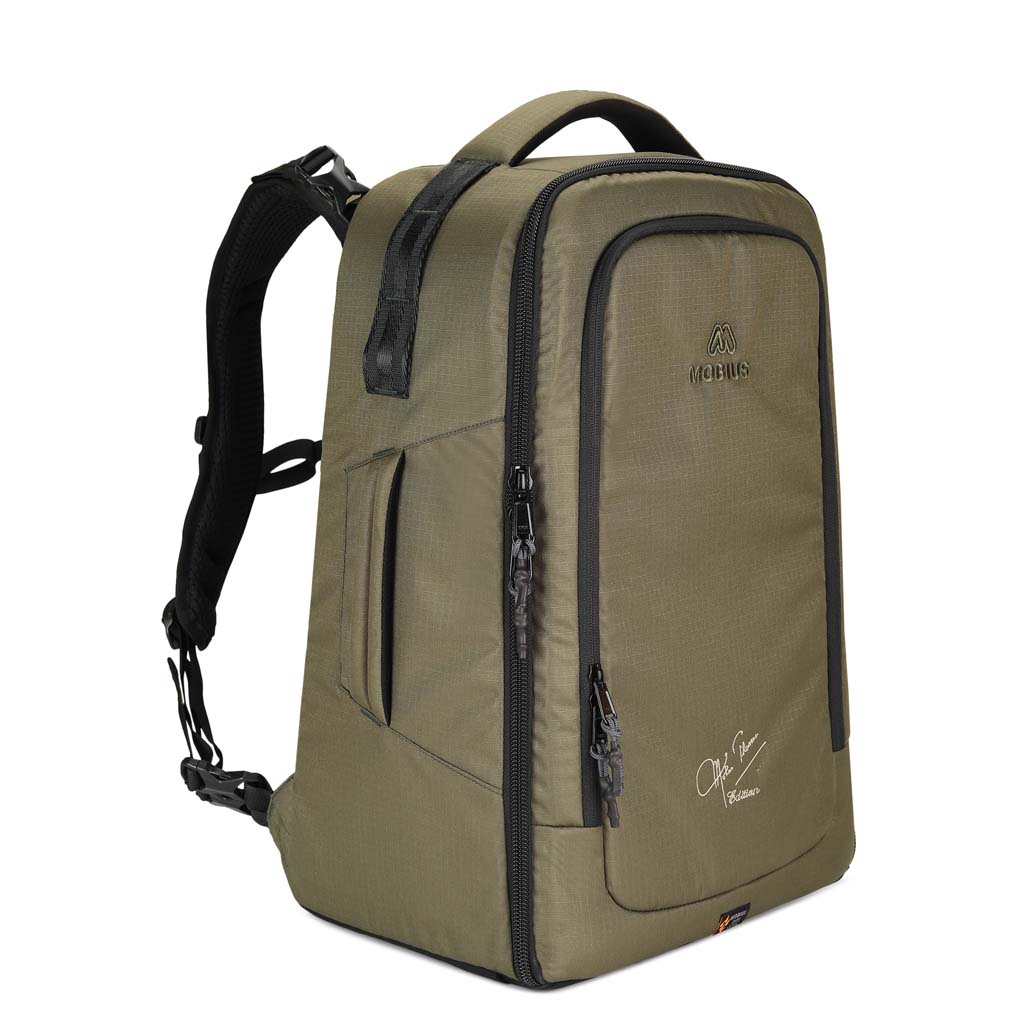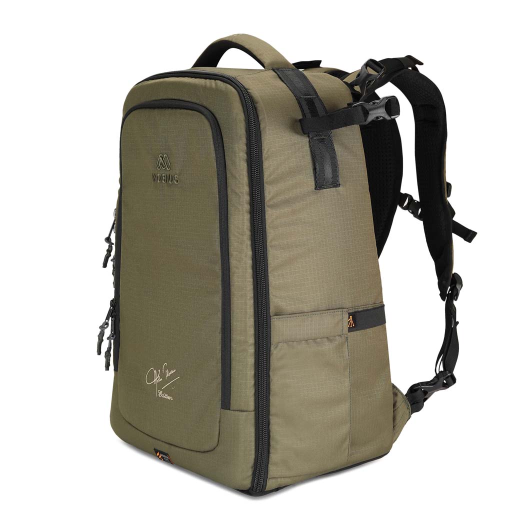 Designed to carry Pro-sized DSLRs and Super Telephoto Lenses.The updated MOBIUS Ninja carries all the camera, lenses & Laptop you need for a wildlife tour, all in an ultralight weight, water-resistant, sleek pack.A large capacity backpack designed for professionals which will be a right companion to carry all your equipment in one go.The camera backpack has a double security feature i.e in case the main zipper fail is left open, the inner zipped mesh flap will always protect your equipment from falling out accidentally.The camera backpack has a sleek laptop compartment in the front which avoids transfer of weight of your equipment on the laptop.The MOBIUS Ninja Pro is crafted using a high density Water-Resistant Nylon fabric and the YKK zippers used are wide and strong for fluid action and effortlessness, it zipper doesn’t get jammed due to dust when you really need to access it.One side pocket can be used to carry a large water bottle & the other side pocket can be used for a tripod with tripod head and it has a strap on top to secure the entire tripod without shifting while trekking or hiking.It has a built-in easy access water-resistant rain and dust cover.