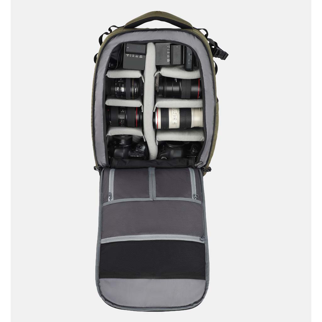 - Generous Gear Capacity: Capable of accommodating a 600mm Lens, 2 Camera Bodies, a 70-200mm Lens (placed vertically), and a laptop up to 14 inches.