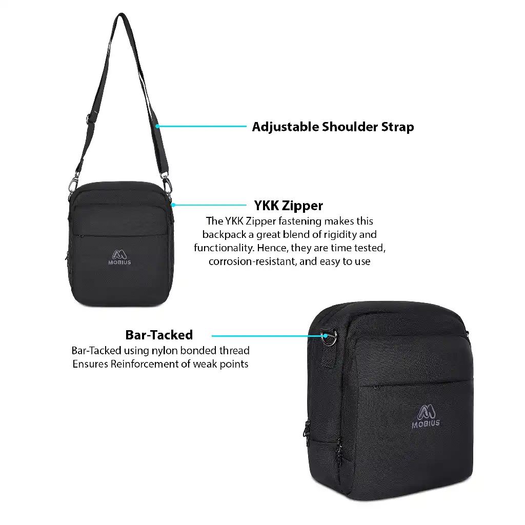 Convenient Accessibility: Keeps essential items within reach for quick retrieval. Enhances travel efficiency by minimizing hassle and maximizing convenience. Upgrade your travel gear with the MOBIUS Versatile Premium Sling Bag, featuring a 100% nylon outer shell with PU coating, ensuring durability and water resistance for all your adventures.