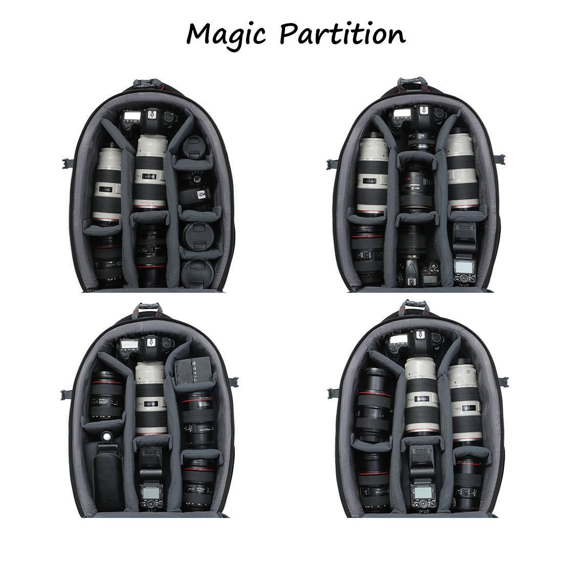 Compatibility : Suitable for Canon 5D Mark4 with Lens 24-105 or Panasonic S1 with 24-105 or Nikon D850 with lens 24-120, Lenses - 3 Nos (70-200 OR 150- 600MM and 16-35,24-70), Flash, Charger, Laptop 17", Tripod.