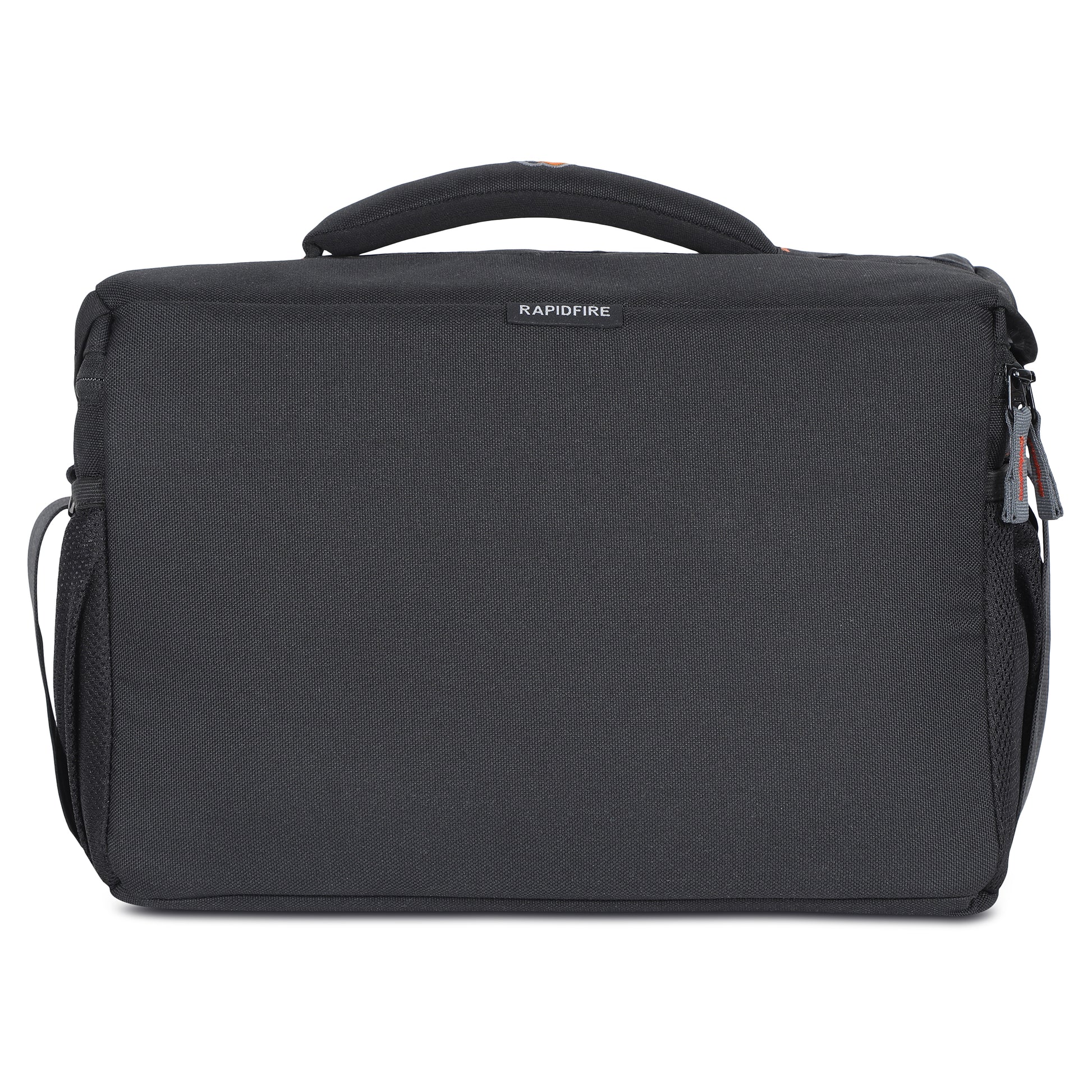 Camera shoulder sling bag for DSLR cameras with additional lenses.