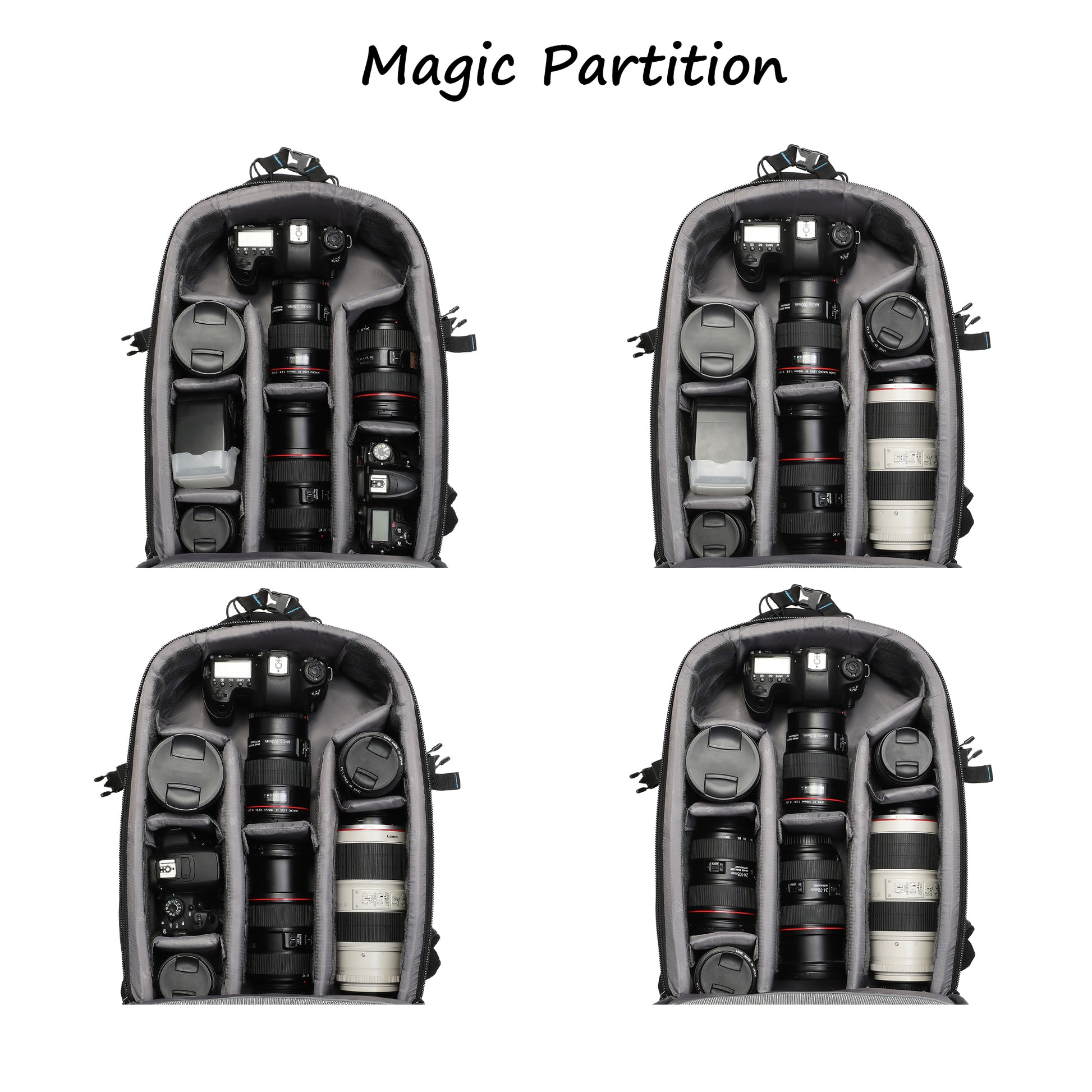 Pro photographer's backpack, purpose-built to organize and protect maximum gear in a compact design.